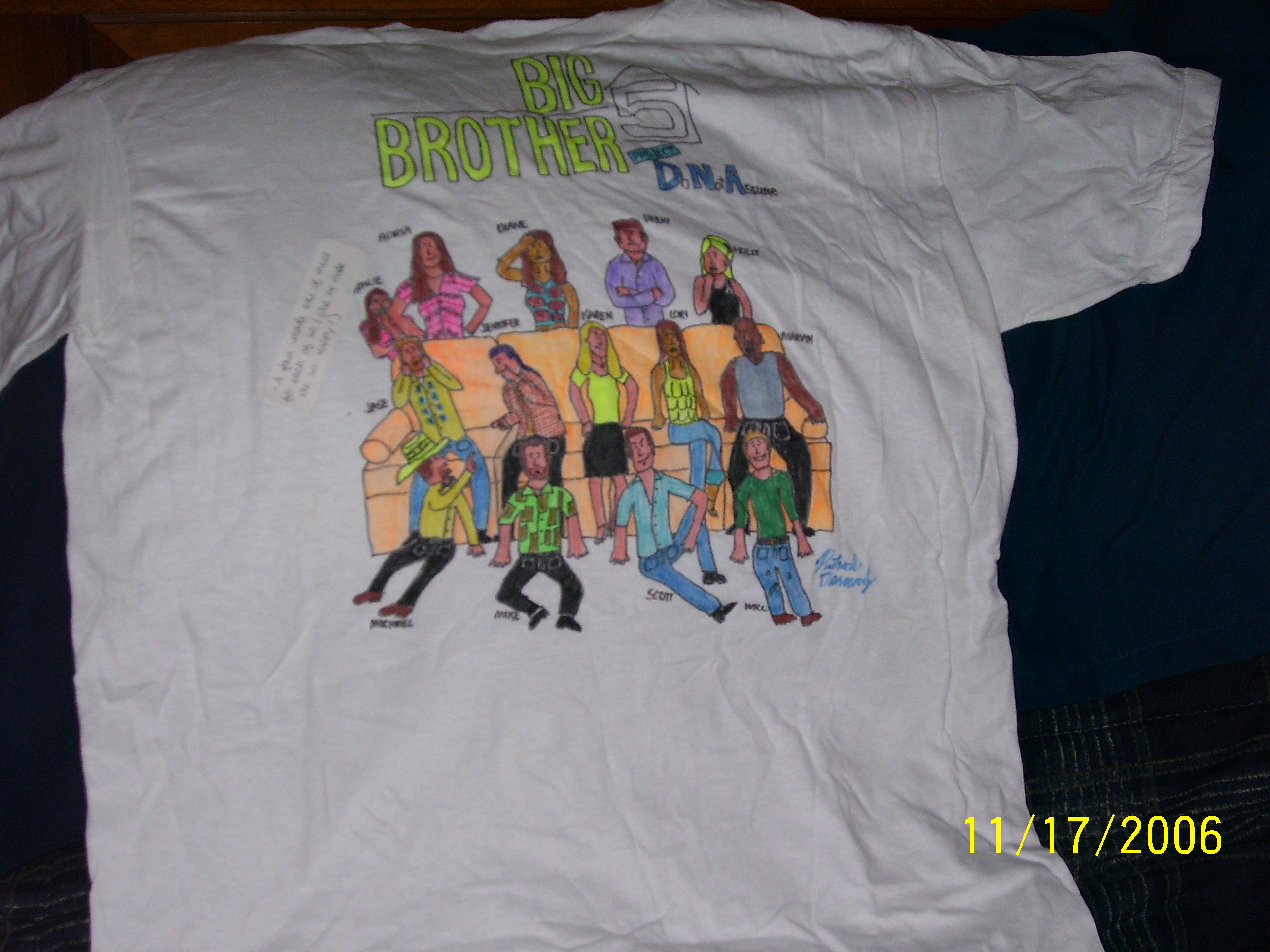 This is a drawing on a shirt that a fan made for Karen.