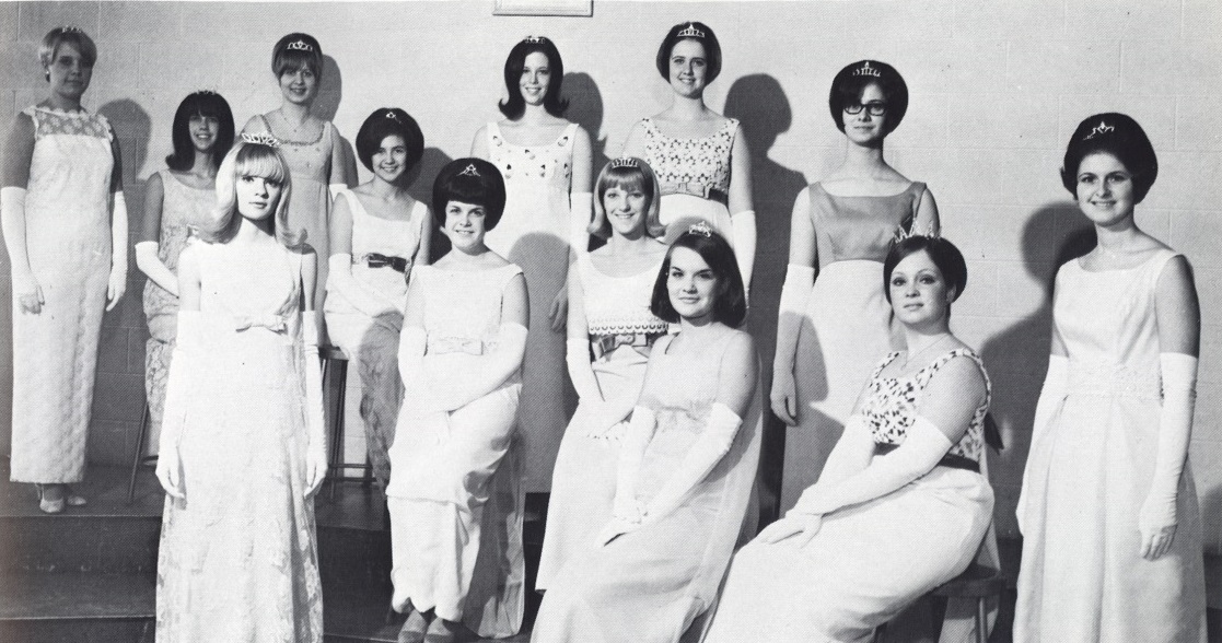 Double Sextette: - Row 1: Kathy Miller, Linda Roos, Paula Parker. Row 2: Debbie Cable, Celeste Pilackas. Row 3: Sharon Ritter, Linda Gussman. Standing: Sharon Brewer, Lois Jones, Sandy Green, Carla Gallion, Diane Davis, Donna Glad.