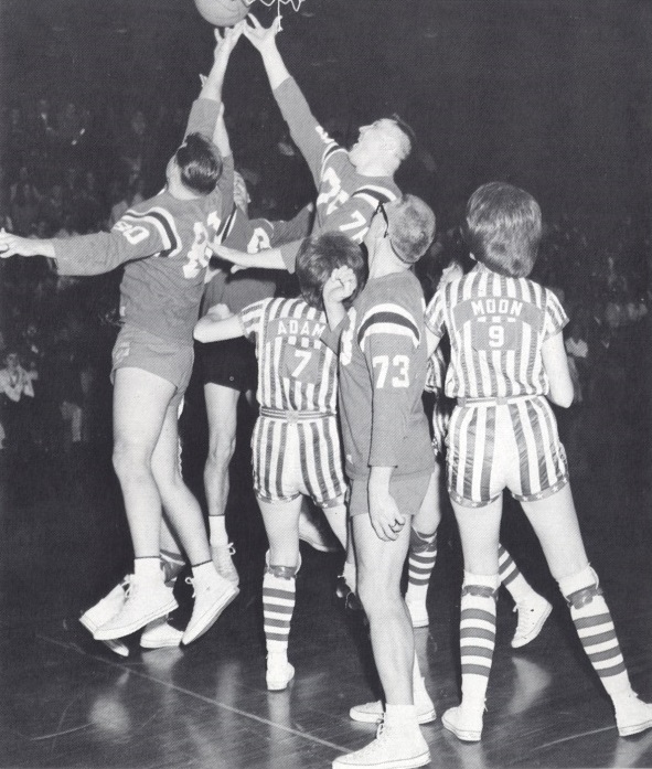 Caption on Page 123: In late February of 1968, Parents Club sponsored a basketball game between the All-American Redheads and the faculty of South. The purpose of the game was to raise money for the after-prom party that Parent's Club sponsors.