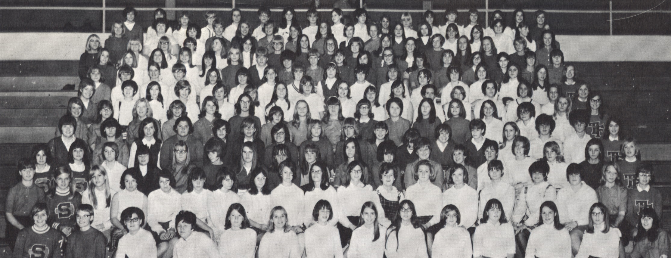 Row 9: Cindy Twardosz, Joyce Sausaman, Carol Magerl, Mary Wold, Maribeth Lindquist, Kathy Archer, Debbie Cilek, Pam Rach, Joan Meilleur, Carol Bobic, Carolyn Maxeiner, Joann Zaur, Eileen Baldwin. Barbara Higbee, Roberta Porter, Kathy McSwiggan, Judy Vajda.