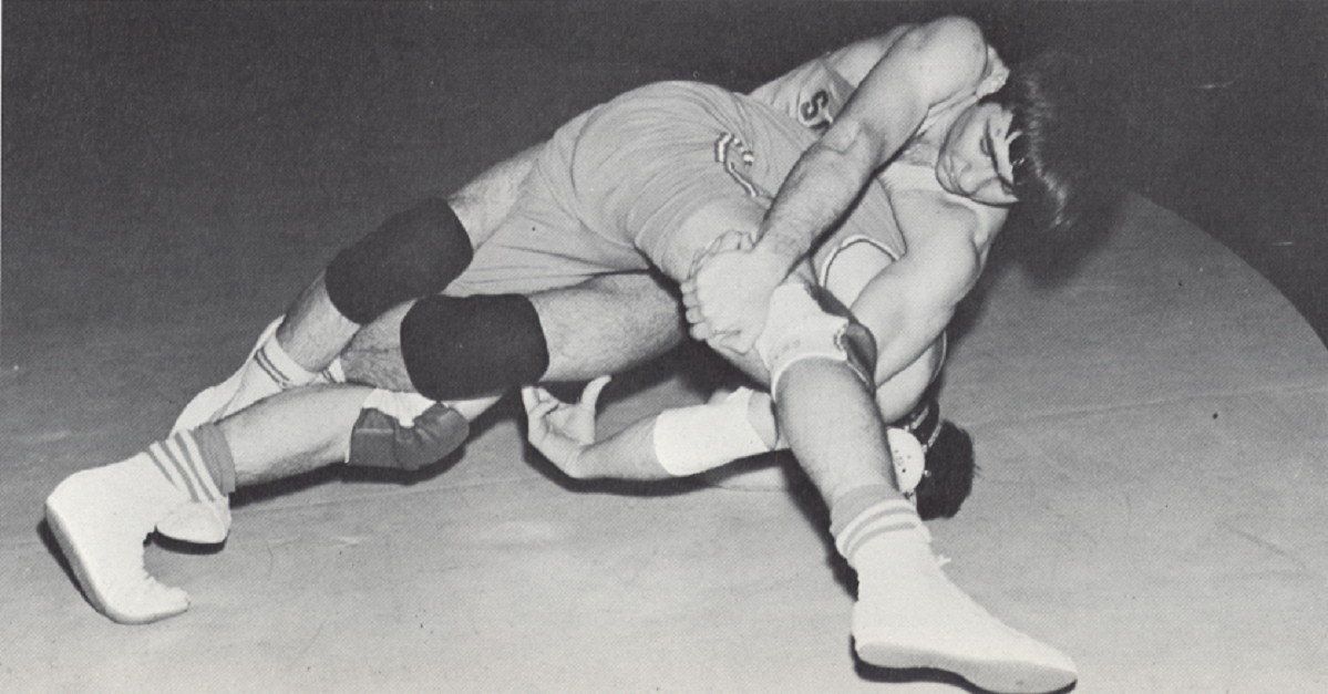 Ed Murphy tries to manuever opponent onto his back for the pin.
