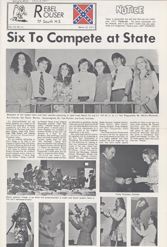 These PDF Files are text searchable, so if you search for "Mark Valco", well, you wont find anything. But on the other hand, if you search for "Tim Koselke," chances are you will find him. Since these pages are so large, it's impossible to fit the whole page in the scan. On some pages I chose to cut a line or two off the bottom. On some pages I chose to cut off the top. Eventually, when the Google and Yahoo spiders make their rounds, it will index the words inside these Rebel Rousers, and you will be able to find them from all the major internet search engines. The Rebel Rousers on this page are from my senior year, September 1970 through June 1971. The previous Rebel Rousers on this website will be organized by specific year, 1967, 1968, 1969, etc. rather than School Season (Sept thru June).