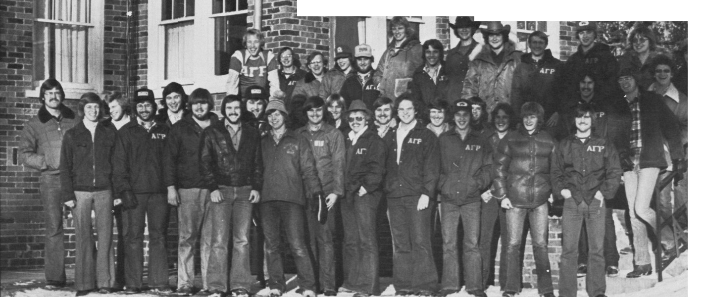 ALPHA GAMMA RHO — Front Row: Torn Foran, Steve Gustafson, Greg terton, Warren Werkheiser, Ken Zindel, Jack Flint, Orhan Uner, Jack Maxwell, Mark Barnard, Wayne Whipps, Dan Kepple, Mar Milligan. Second Row: Tom Hogan, Rick Elliot, Bruce Searle, Brad Bores, Al Wolf, Terry Boydsten, Joe Ary, Rocko Schloppi, Al Thrush, Mark Sturtewagen, Rick Hatt. Third Row: Dan Hogan, Joe Smith, Arnie Rohe, Lee Waters, Don Wagenblast, Ken Kunz, Mark Christopher, Darrell Ippensen, Rock Katschnig, Mark Hoffman, Tom Dolan, John Goleman, Mike Moens.