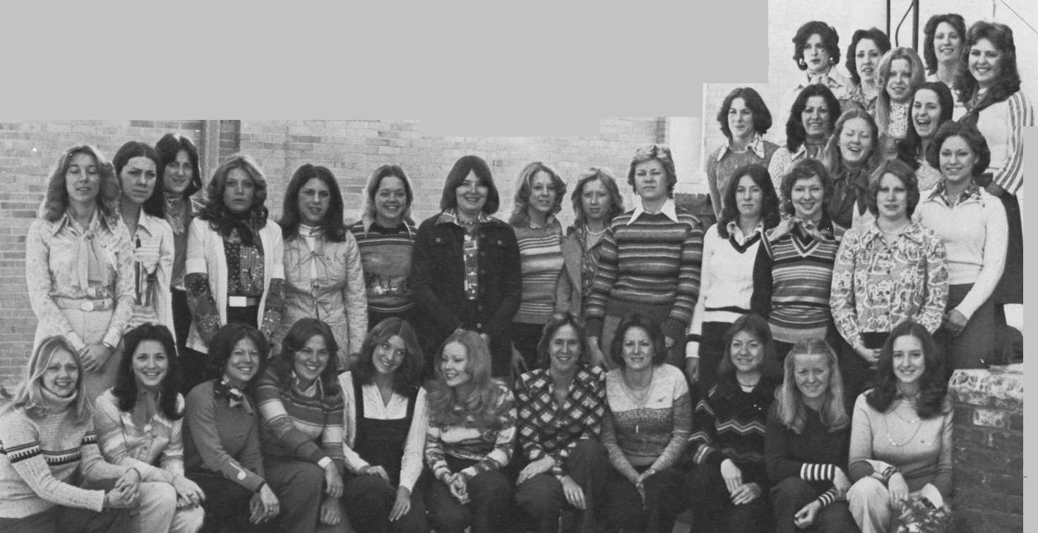 ALPHA SIGMA ALPHA — Front Row: Marcy Russell, Nancy Vosilakis, Maureen Warner, Laura Bloha, Judy Johnson, Kothy Bud., Sue Dunn, Vicki Peterson, Marcia Keng, Candy Moule, Any Darby, Second Row: Kim Meinsen, Debbie Lewis, Mary Thiel, Jon Bielinski, Joanne Paolello, Gino Stalker, Kim Reichen-bach, Louise Parton, Linda Russell, Sue Johnson, Debbie Revin, Sue Wenchu-nas, Sue Raunchenecker. Third Row: Mary Morton, Linda Nordiello, Susie Oak-ford, Patty Northey, Patty Azzolin. Fourth Row: Judy Nielson, Nancy Lynch, Donna Slope, Sharon Tomb., Chris Liles.